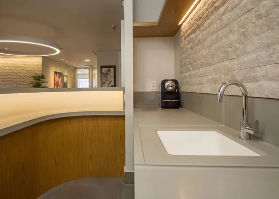 Can be thermoformed into curved shapes (e.g., waterfall edges, integrated sinks).